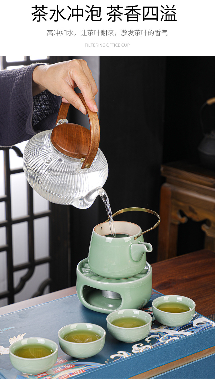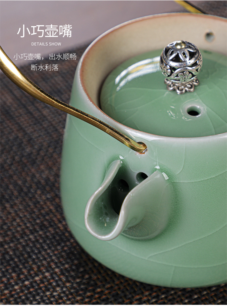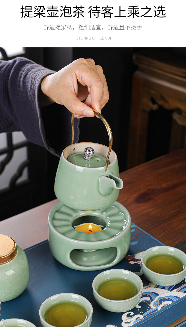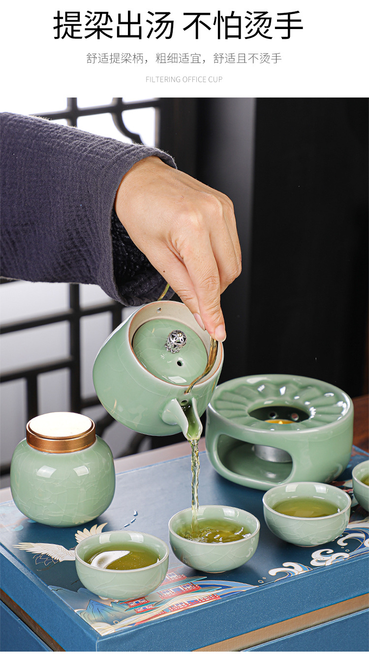 创意国潮哥窑提梁壶茶具套装 煮茶器茶壶茶杯一壶四杯茶叶罐礼盒 送客户礼物送什么好
