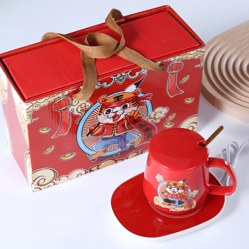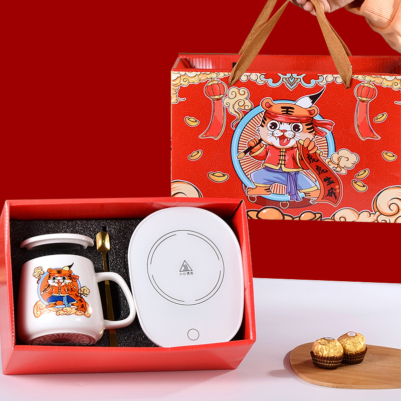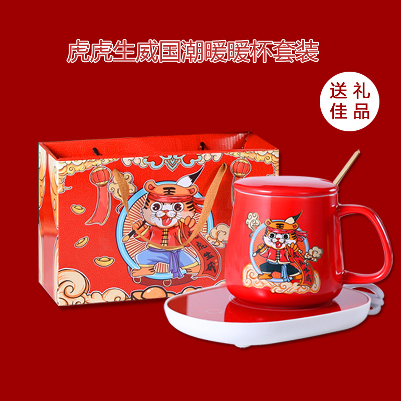 国潮虎55℃恒温杯礼盒套装 陶瓷杯+暖杯垫 公司年会礼品
