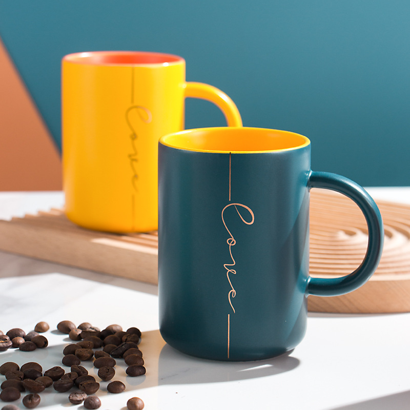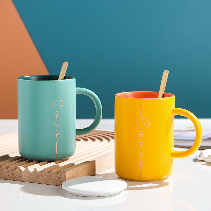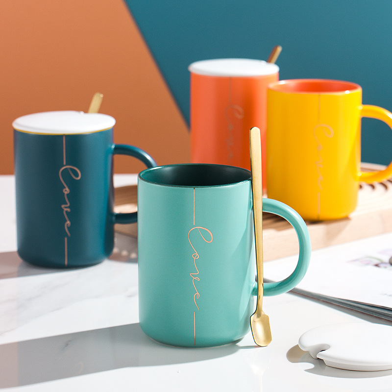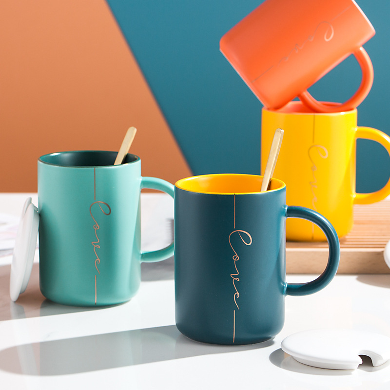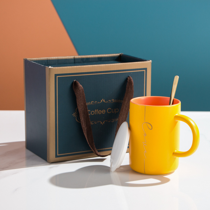莫兰迪撞色系列马克杯 带杯盖勺陶瓷杯礼盒装 活动礼品