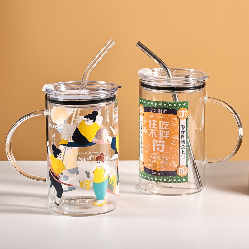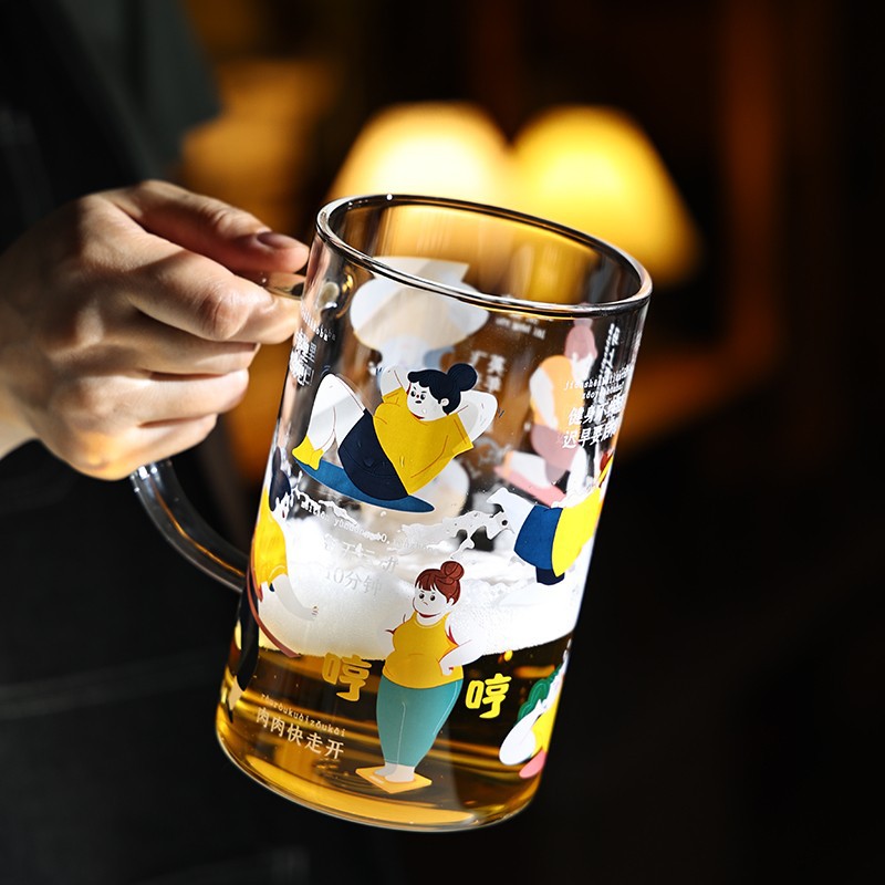 大容量耐高温玻璃杯 国潮大号有手柄饮料杯 三八节日伴手礼
