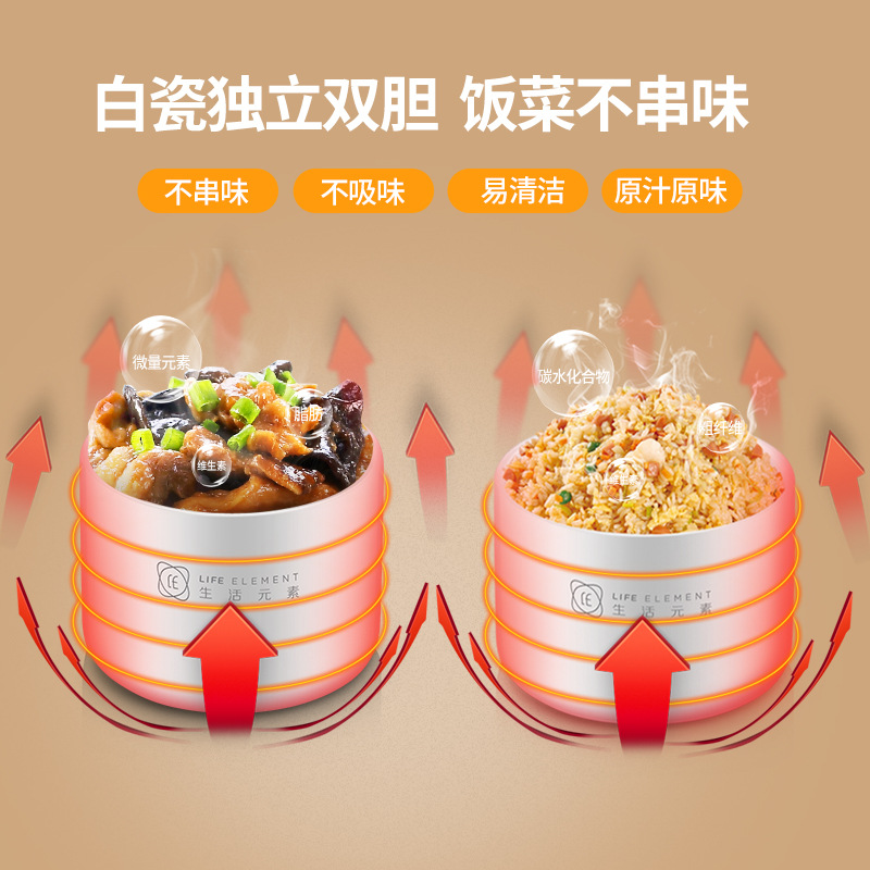 蒸煮饭盒 双陶瓷内胆加热电饭盒 密封保鲜煮饭热菜 100元左右的礼品