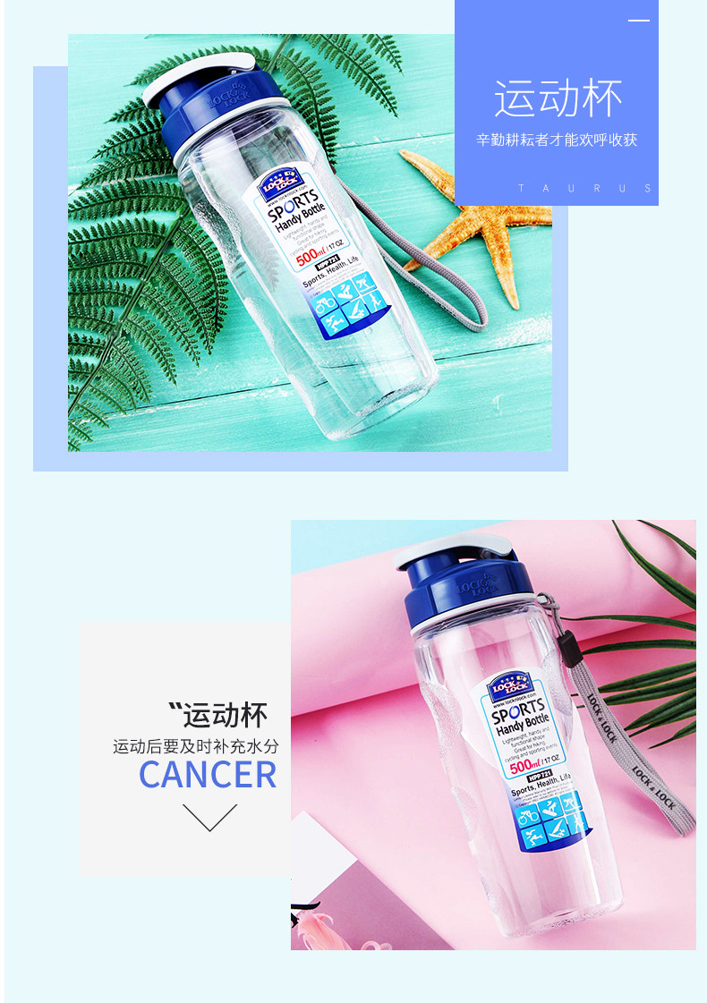 乐扣乐扣(Lock&Lock)运动水杯 便携塑料水杯500ML/700ML 奖励学生的奖品