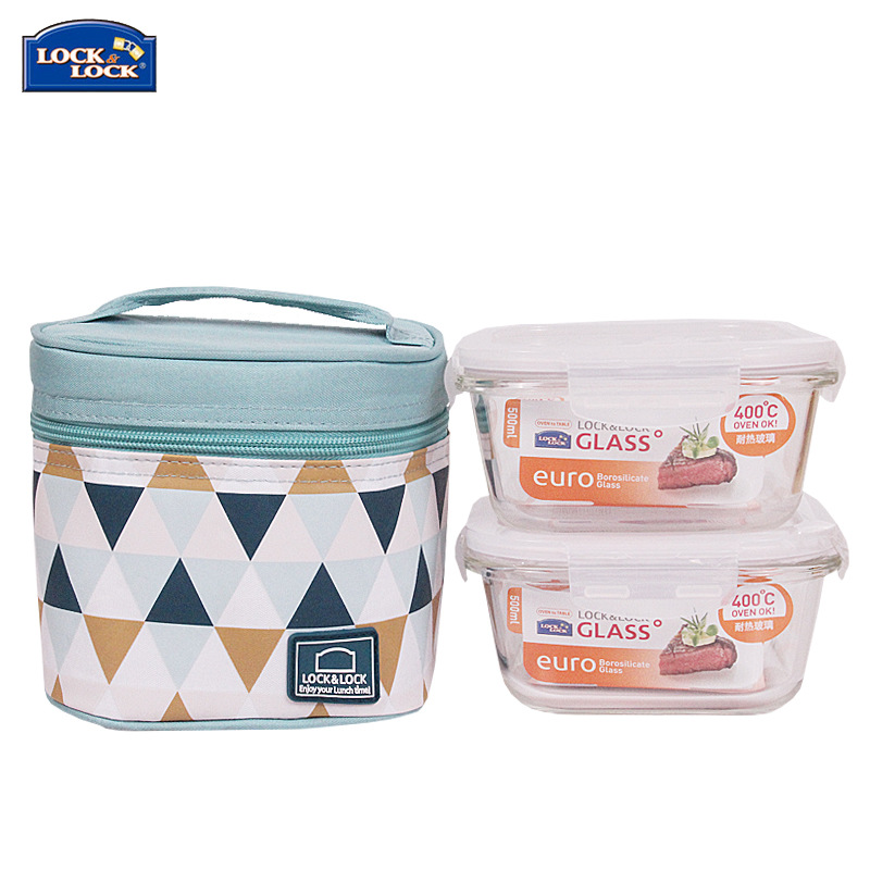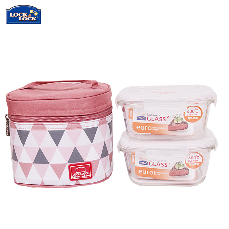 乐扣乐扣(Lock&Lock)耐热玻璃保鲜饭盒两件套装 带保温包 女士实用礼品