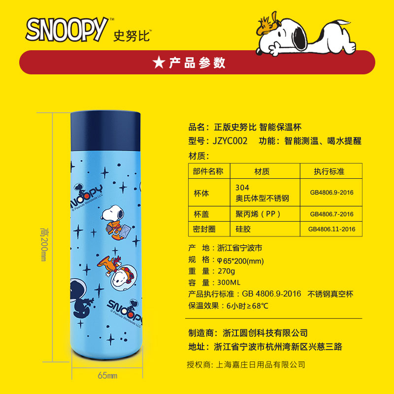 Snoopy史努比 智能触屏温显杯 智能测温喝水提醒保温杯 创意实用礼品