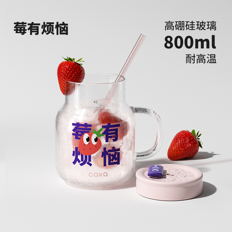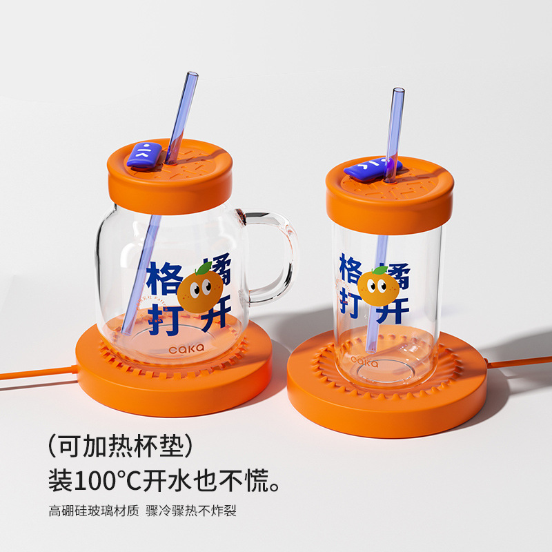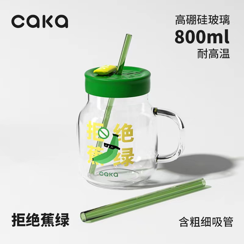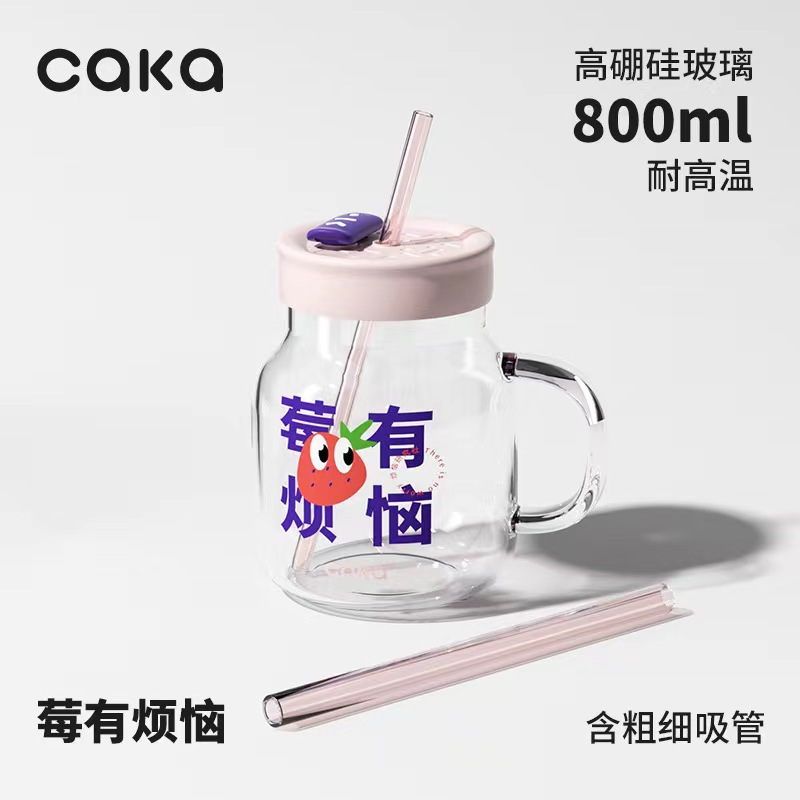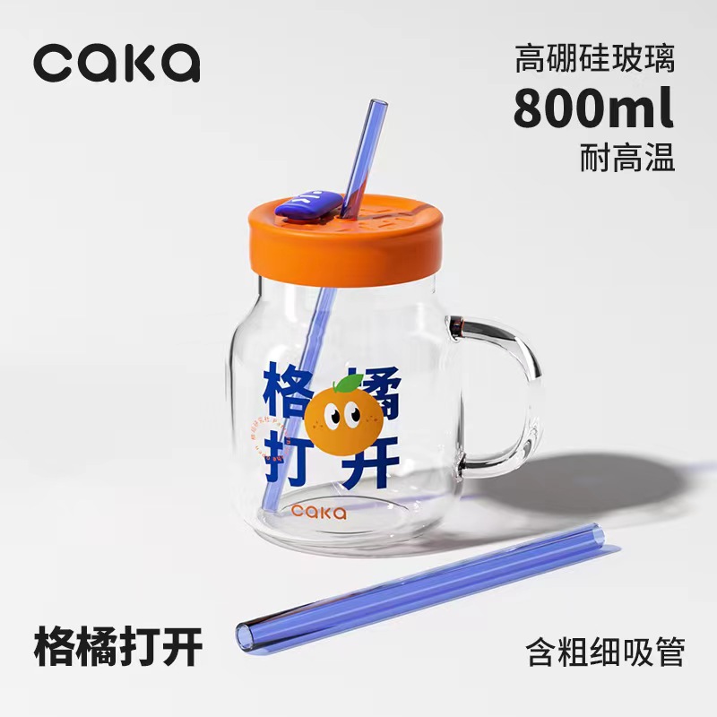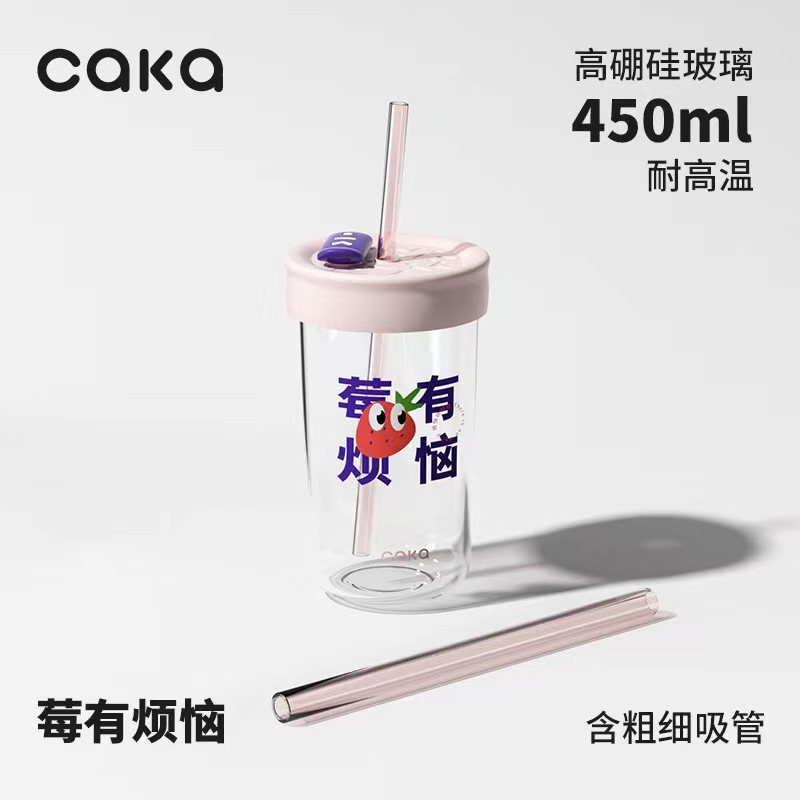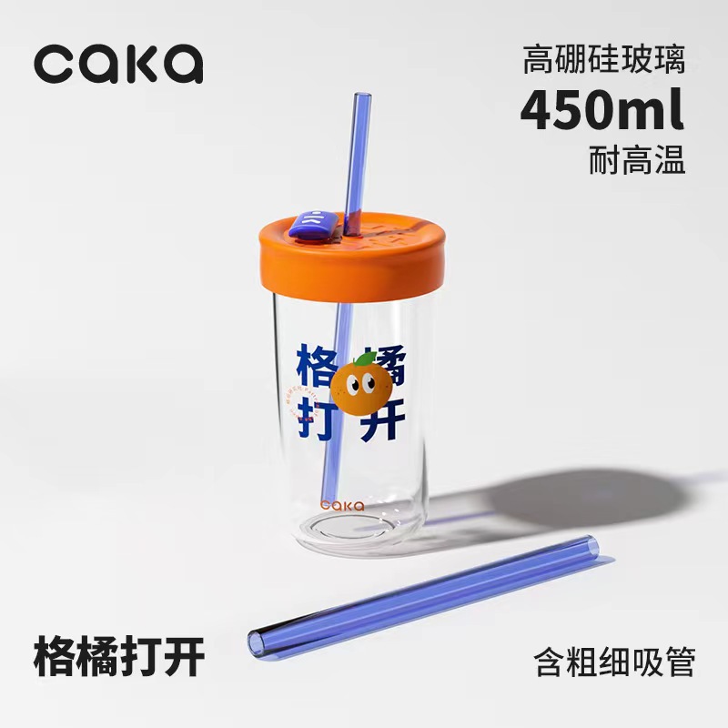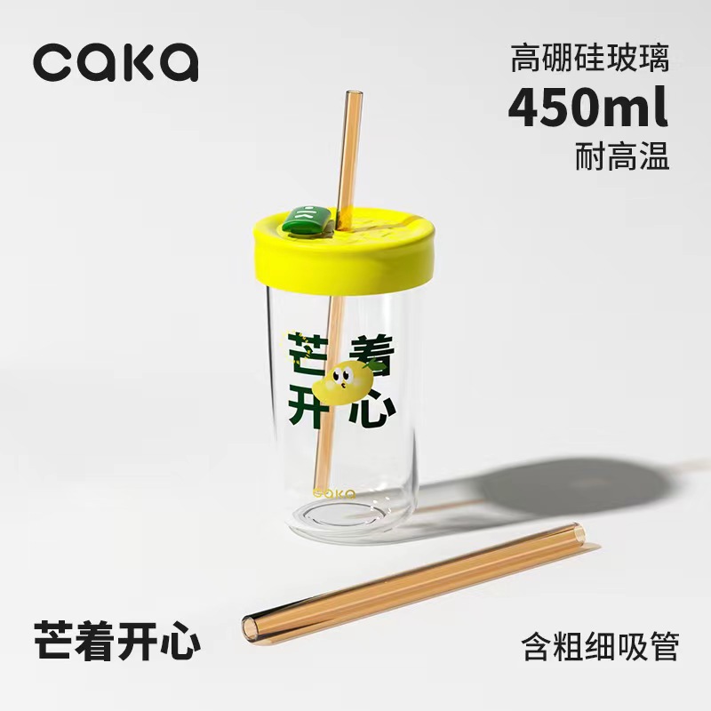 CAKA茶卡创意吸管玻璃杯 夏季耐高温高硼硅水杯 夏季礼品